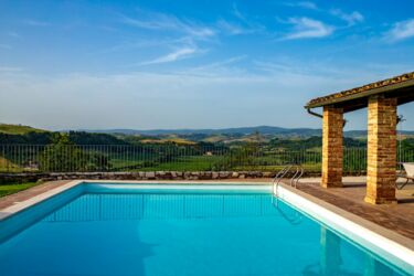 Sie können aber den Schwerpunkt Ihres Urlaubs auch auf die Entspannung im Landgut legen und dafür Ihren Urlaubsmittelpunkt an den verlockenden Pool verlegen, von dem aus Sie weit über die absolut typische Toskana-Hügellandschaft südlich von Siena blicken.
