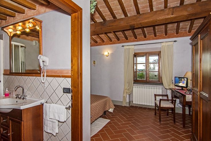 Das kleine, aber feine Weingut Valli Ferone liegt in der toskanischen Hügellandschaft um Lari mit schönem Pool und einer großen Panorama-Terrasse.