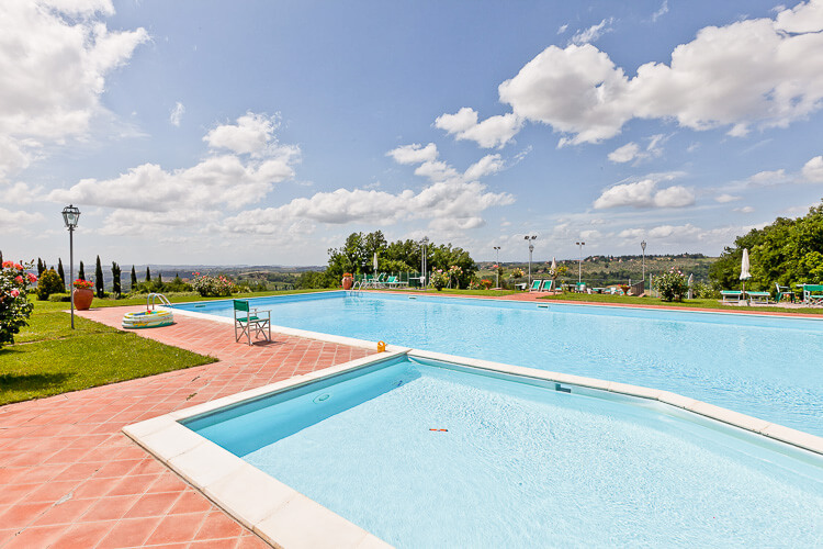 Ferienwohnung Italien, Toskana, Zentral Toskana - Landesinneres (San Gimignano, Chianti, Volterra)Ferienwohnung mit überdachter Terrasse, Pool (18 m x 9 m), Kinderpool und Spielplatz, Toskana Urlaub mit Familie